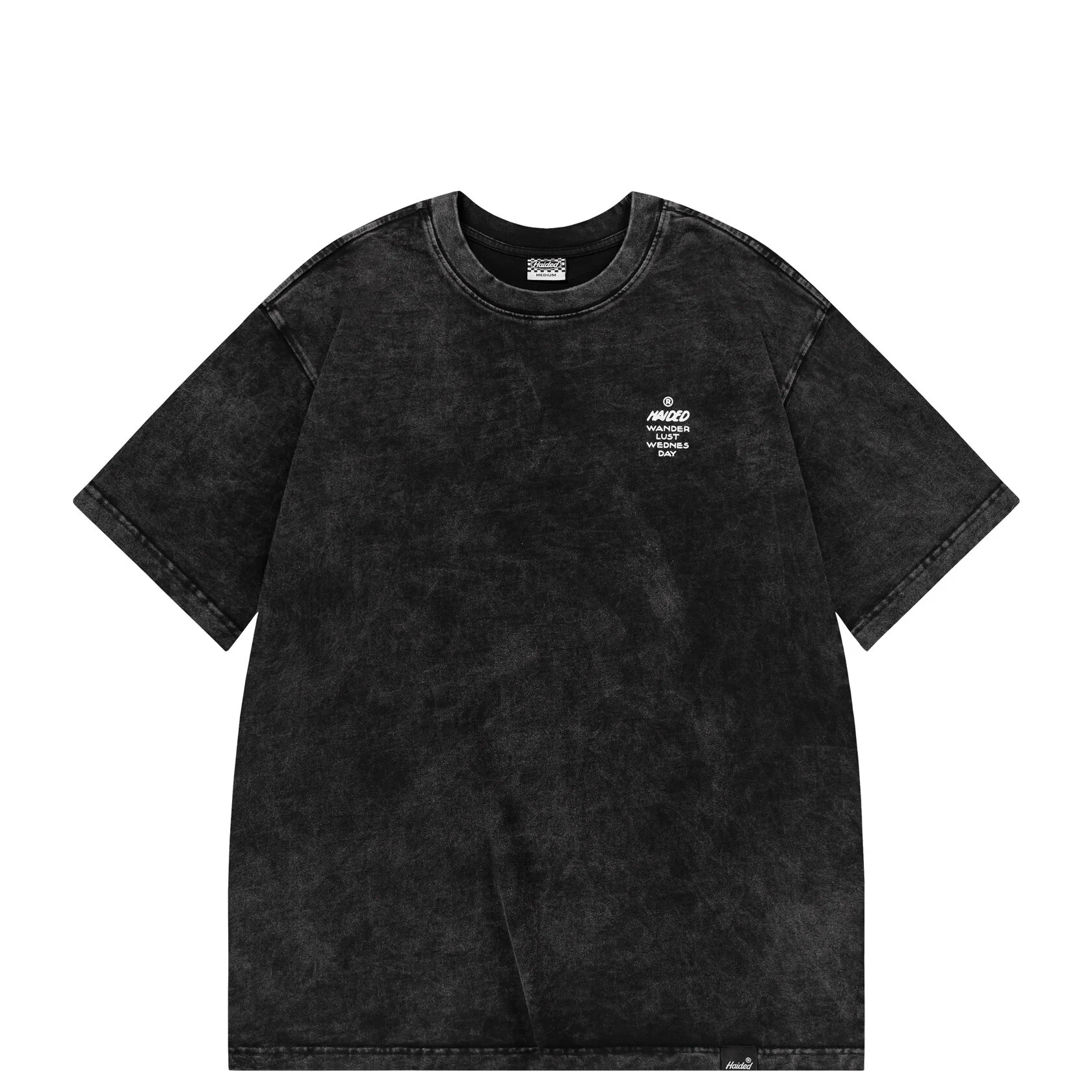 Футболка расслабленного кроя из хлопка с эффектом неравномерного окрашивания (кислотная стирка) с принтом на груди и на спине.