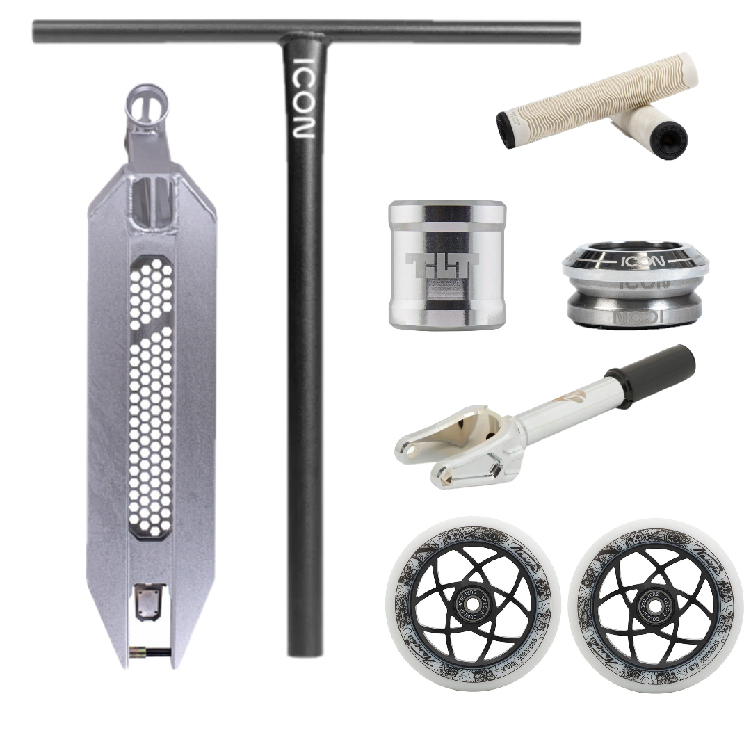 Так же было принято решение поставить вилку Комета Эклипс с IHC компрессией для баланса прочности и легкости. На место колес были поставлены Комета Атом бело-черного цвета. Для плавного вращения была установлена рулевая ICON STRIPE chrome. А держит всю эту систему двух болтовый зажим TILT Arc в серебряном цвете. Благодаря такому соотношению деталей вес самоката 2.9кг, что делает его отличным вариантом как для начинающих райдеров так и для опытных ребят.