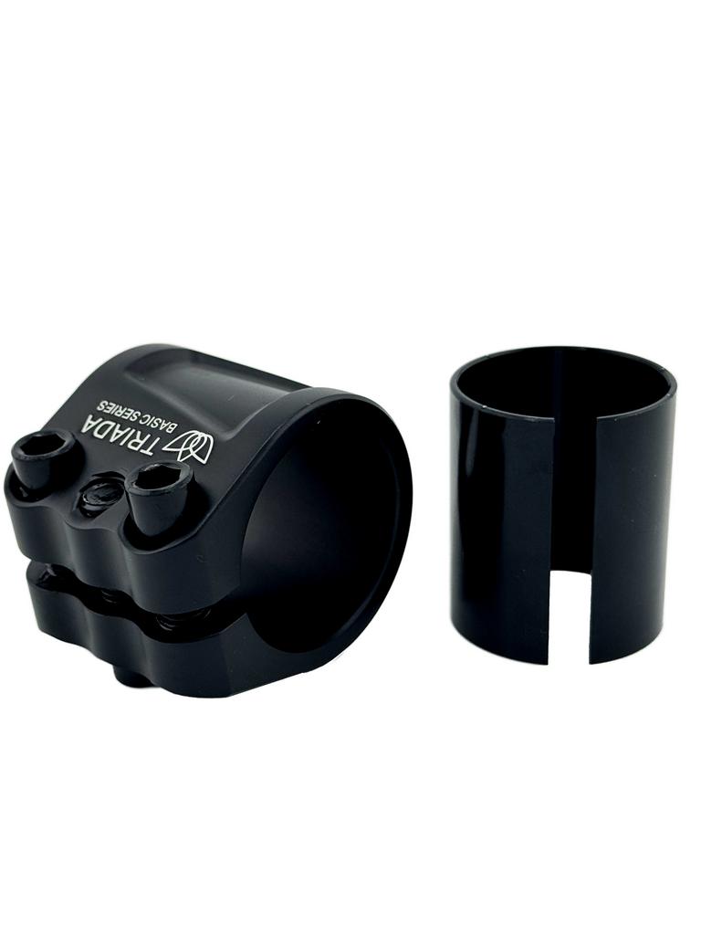 В комплекте с зажимом идет проставка, которая позволит установить руль 34,9 мм и 31,8 мм