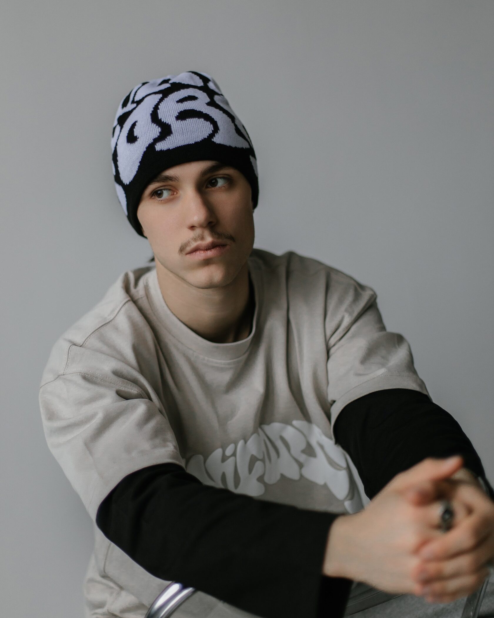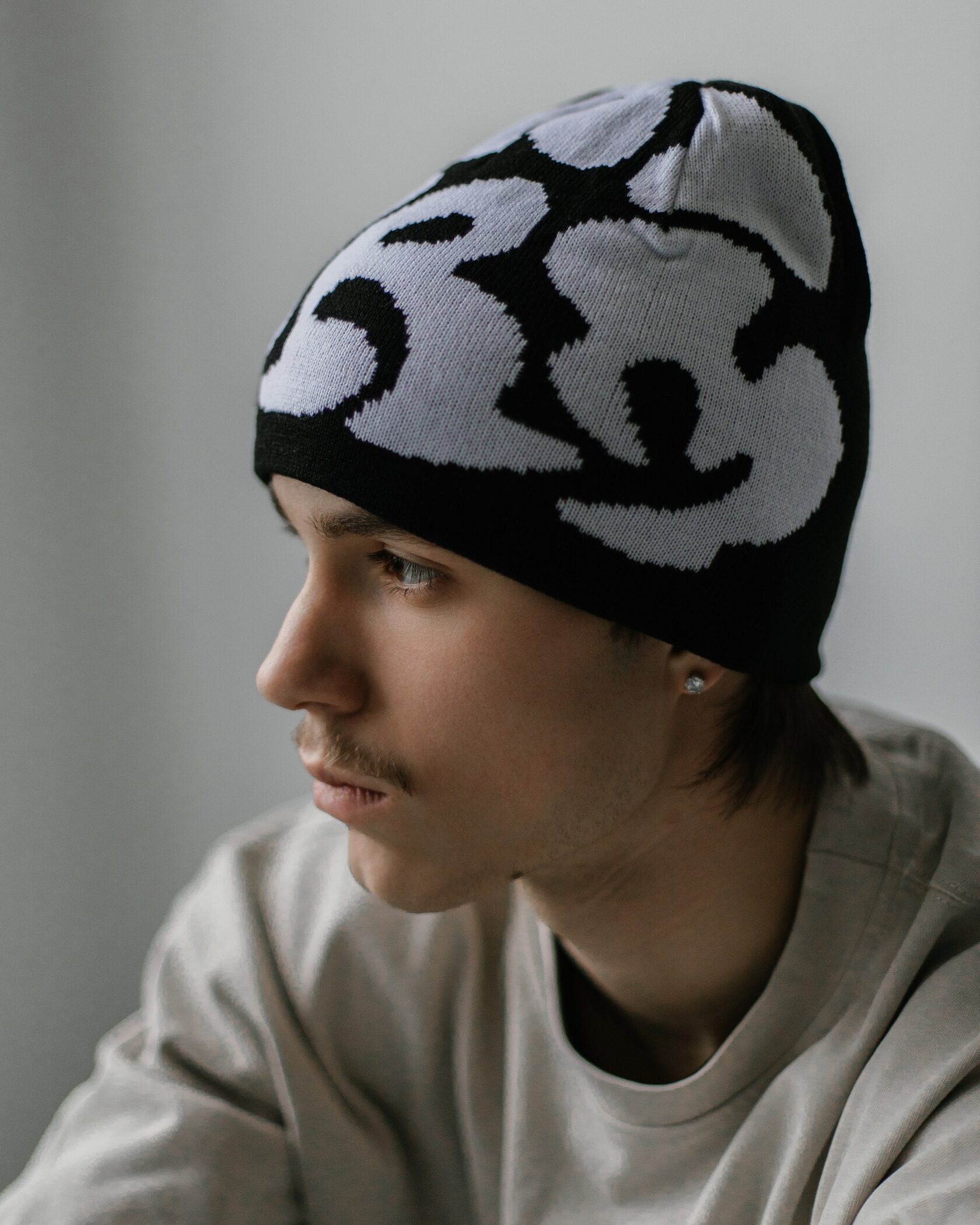 Крой универсальный — сидит плотно, но не давит. Подходит под любой образ: от уличного до повседневного. Брендинг выполнен вязкой.