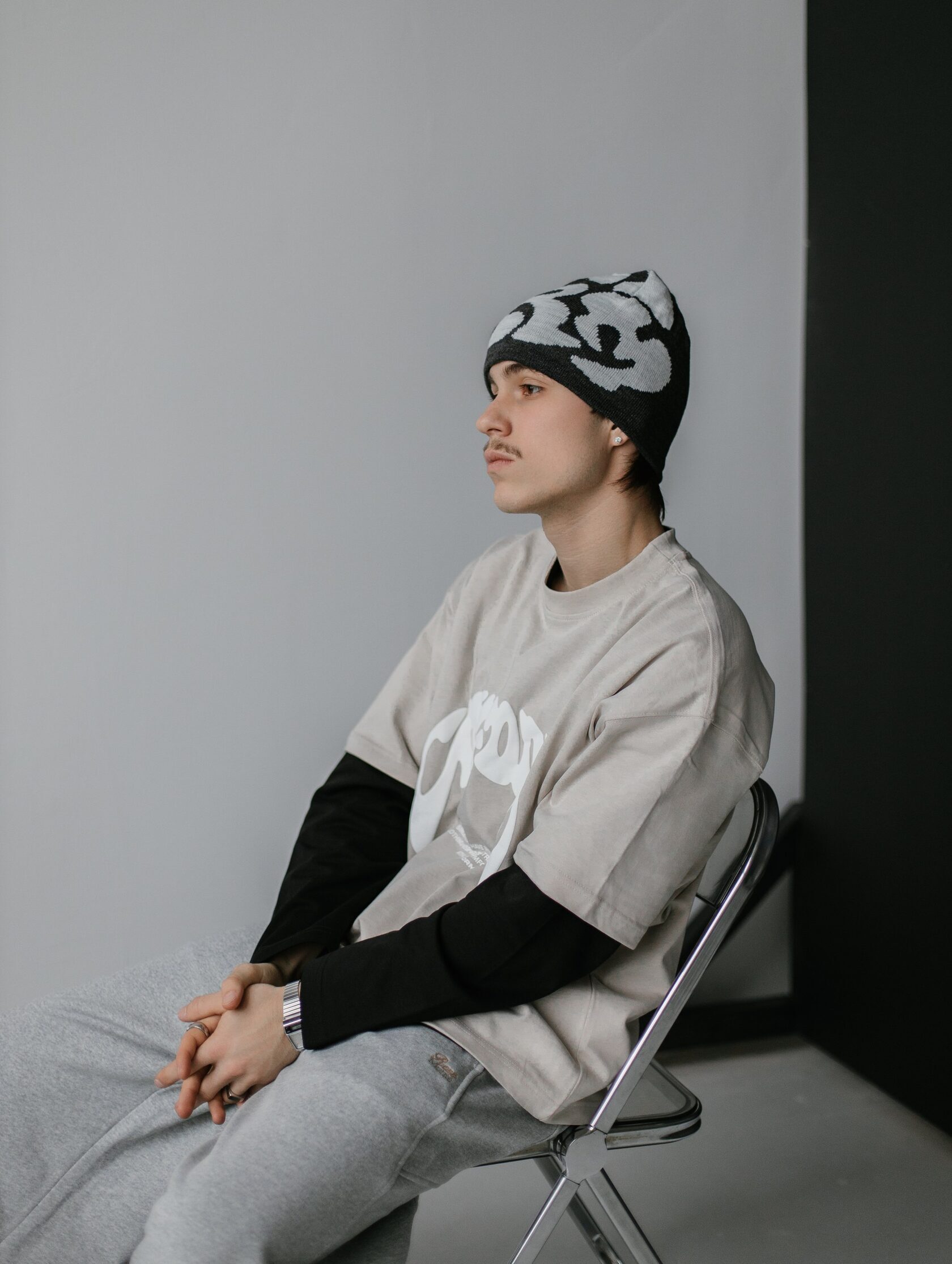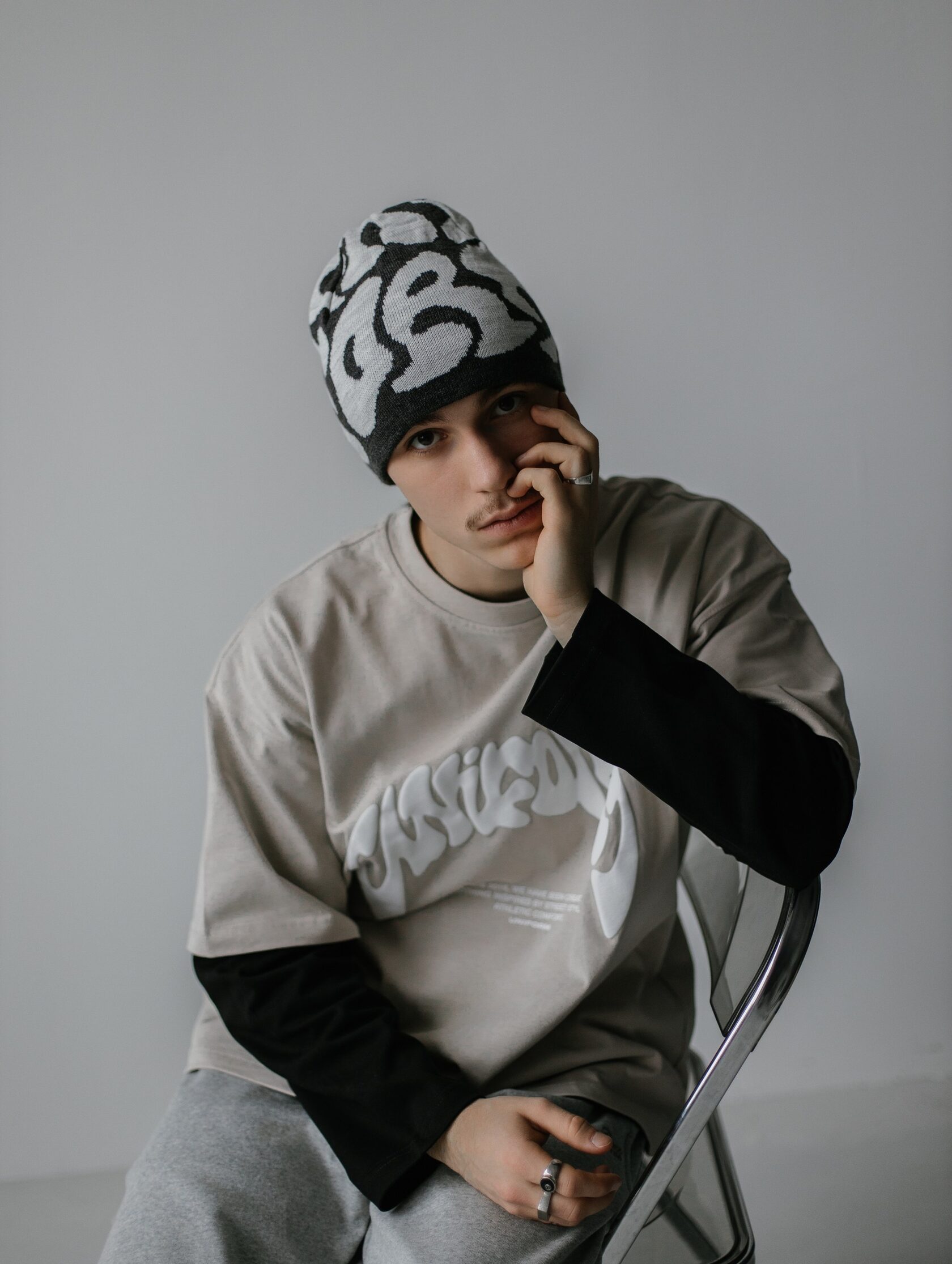 Крой универсальный — сидит плотно, но не давит. Подходит под любой образ: от уличного до повседневного. Брендинг выполнен вязкой.