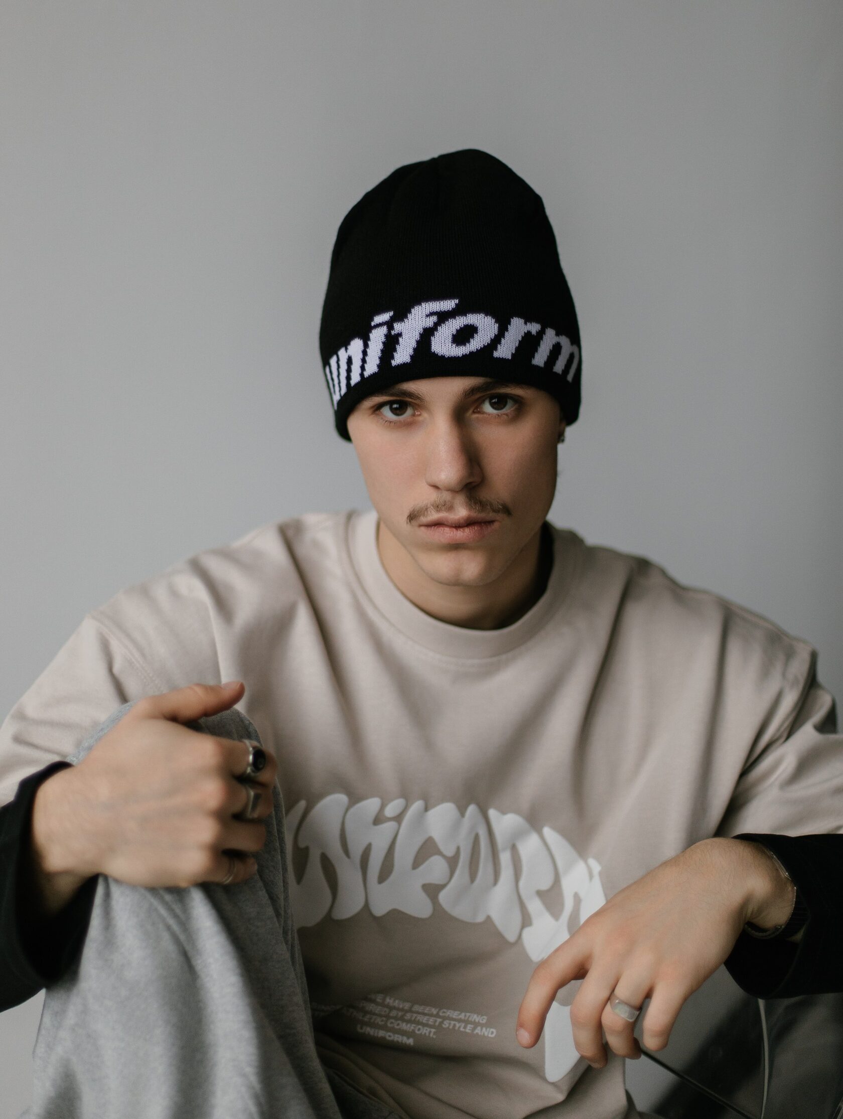 Крой универсальный — сидит плотно, но не давит. Подходит под любой образ: от уличного до повседневного. Брендинг выполнен вязкой.