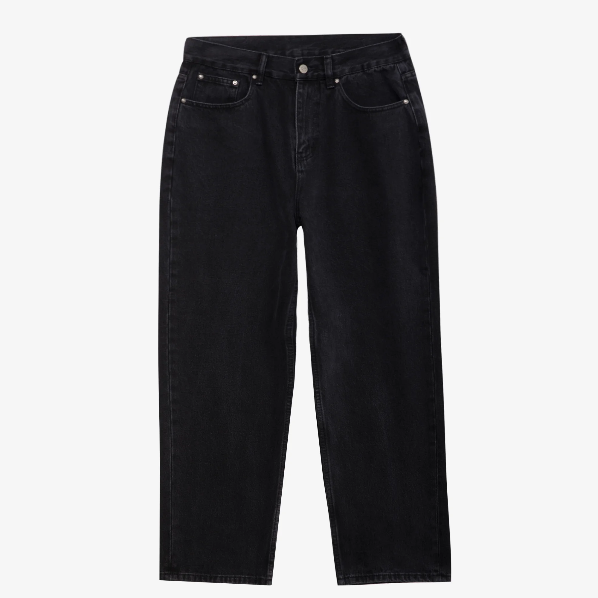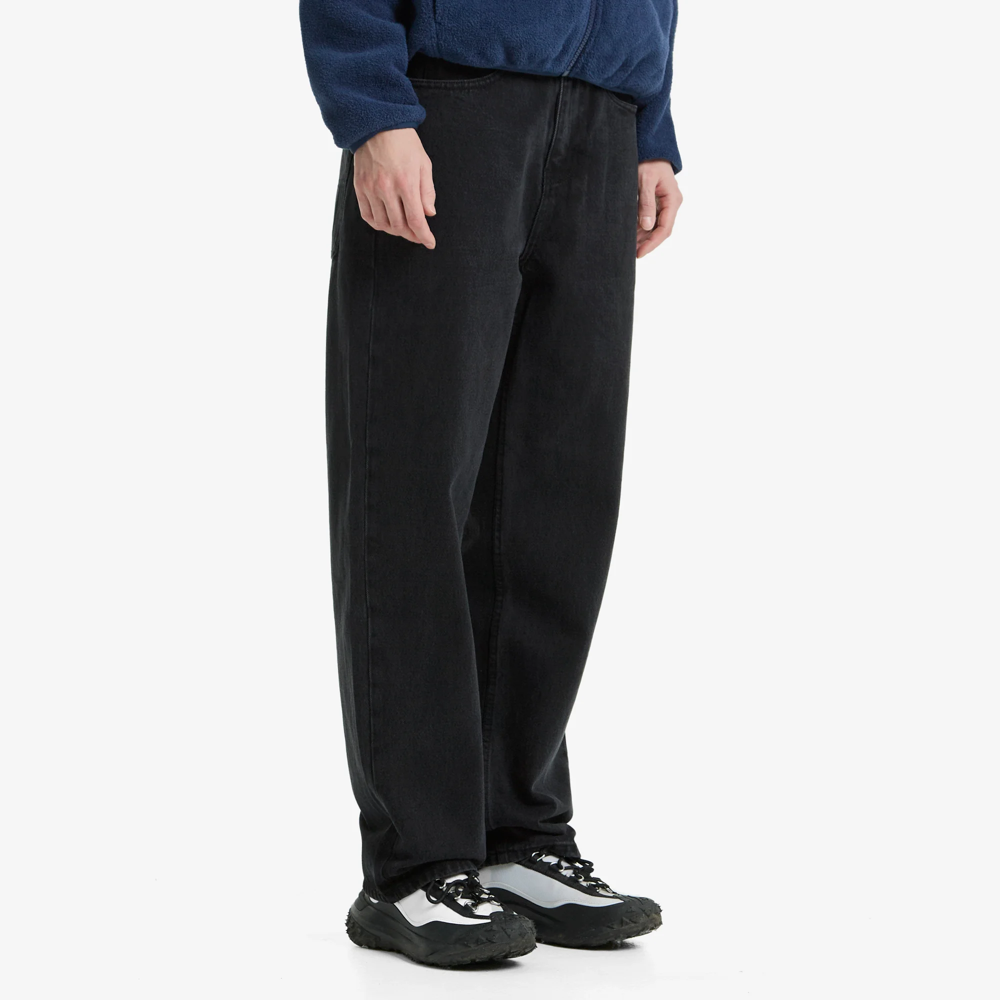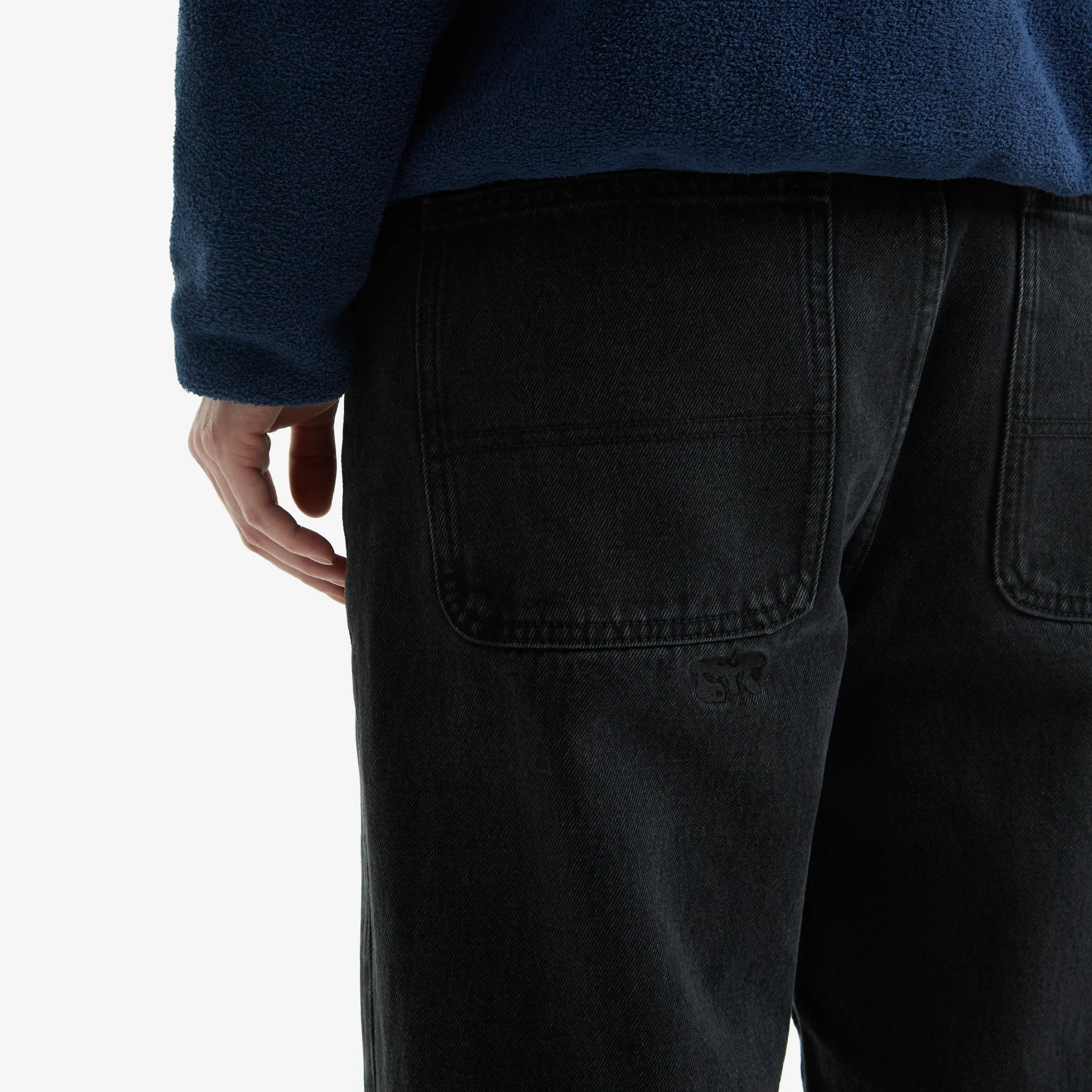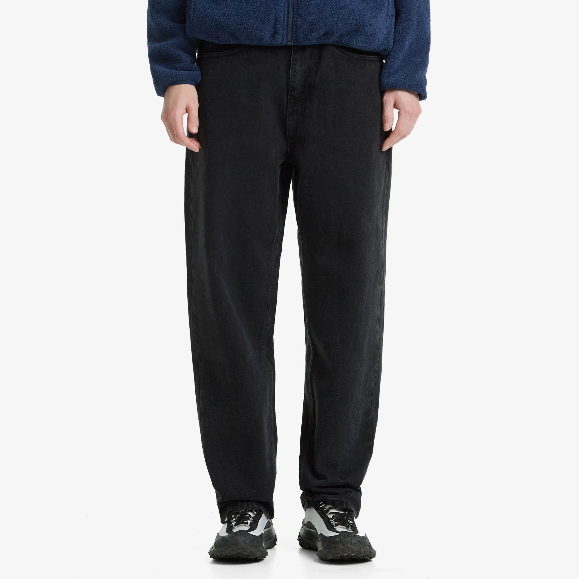 Джинсы свободного кроя в монохромной черной расцветке, сделанные из прочного и износостойкого денима плотностью 13 унций. Универсальный 5-карманный силуэт с просторной штаниной, небольшим сужением от колена и стандартной посадкой на талии. Лаконичный декор с вышивкой под задним левым карманом, а также кожаным патчем с тисненным логотипом МЕЧ.