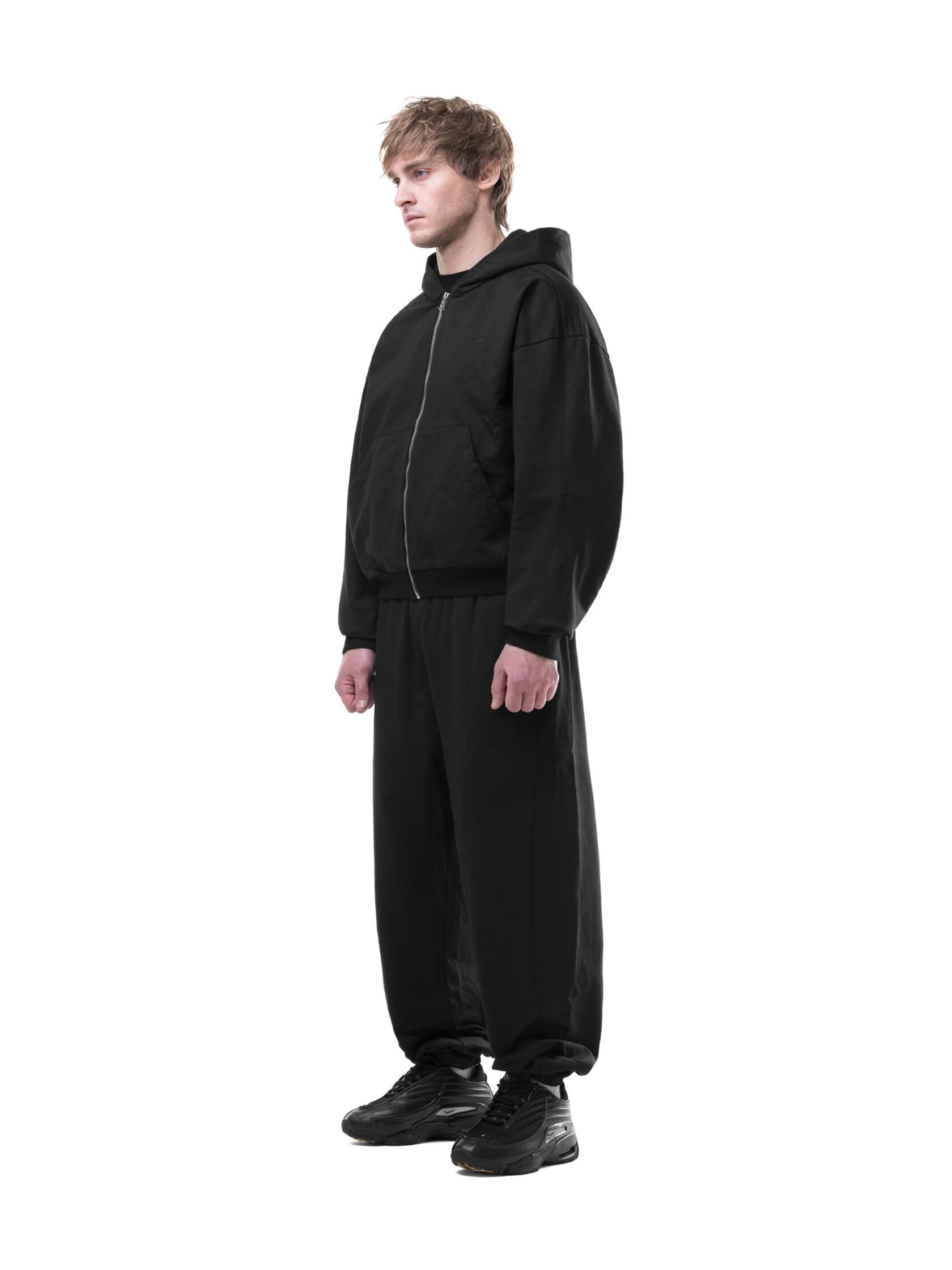 Зип-худи с характерным boxy-fit кроем: объёмный силуэт с заниженной линией плеч и укороченная длина. Выполнено из тяжелого натурального хлопка. Фирменная металлическая молнии с колючкой. Вышивка на груди.