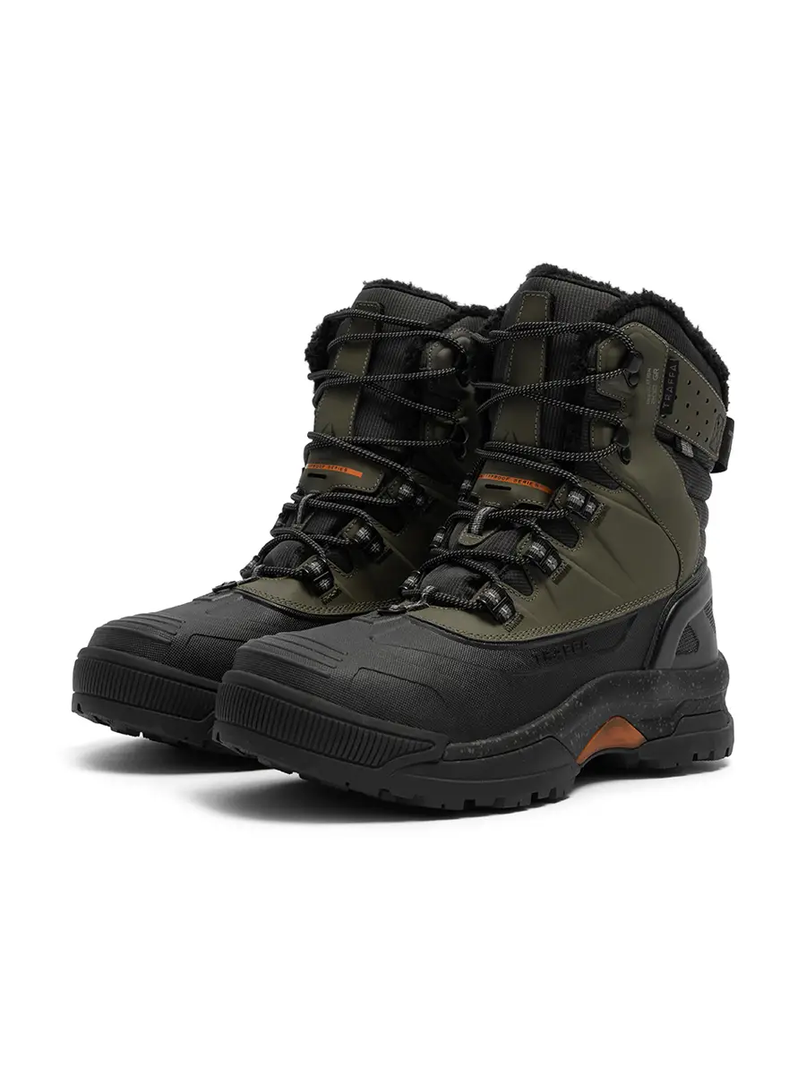 Утеплитель плотностью 200 грамм рассчитан на поддержание комфортной температуры до -20C, а подкладка из шерпы усиливает теплоизоляционные свойства, обеспечивая мягкость при контакте с ногой.