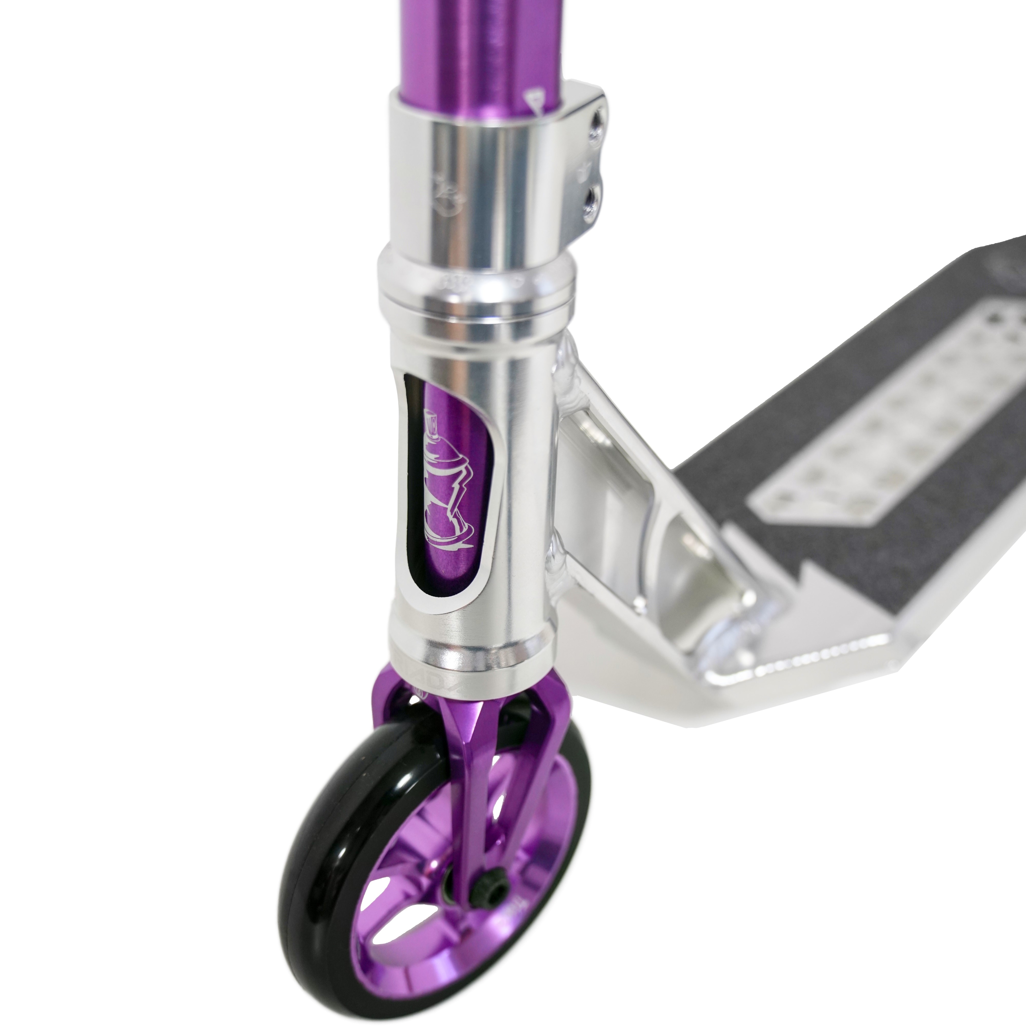 Самокат собран на IHC компрессии, установлена самая легкая и прочная вилка весом всего 150 грамм из алюминиевого сплава 7075.
